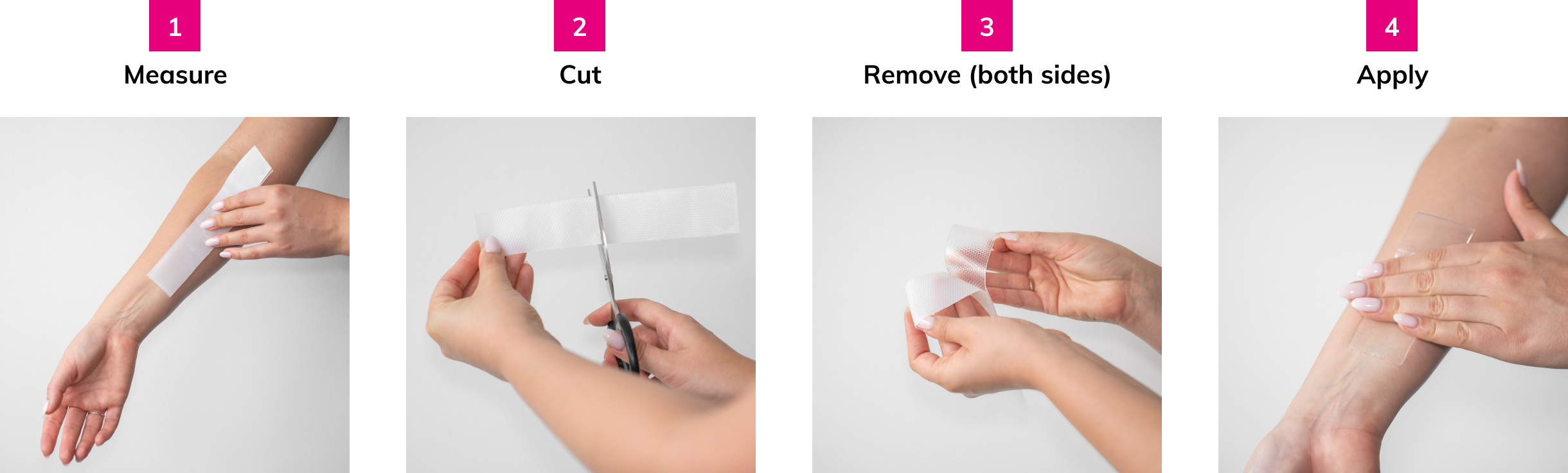 - Place the sticky side directly over the scar, ensuring it adheres smoothly without air bubbles or wrinkles.