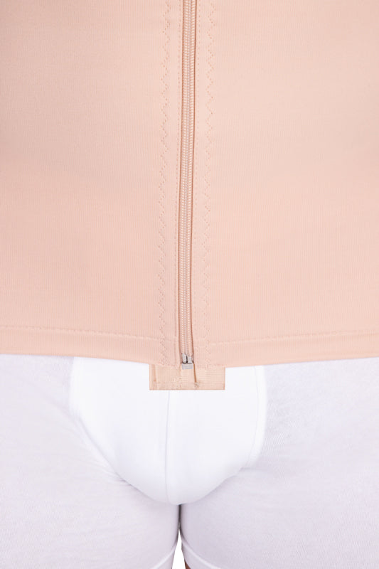- Sleeveless post-operative male vest suitable after gynecomastia (male breast reduction), abdominal plastic surgery as well as flanks and back liposuction