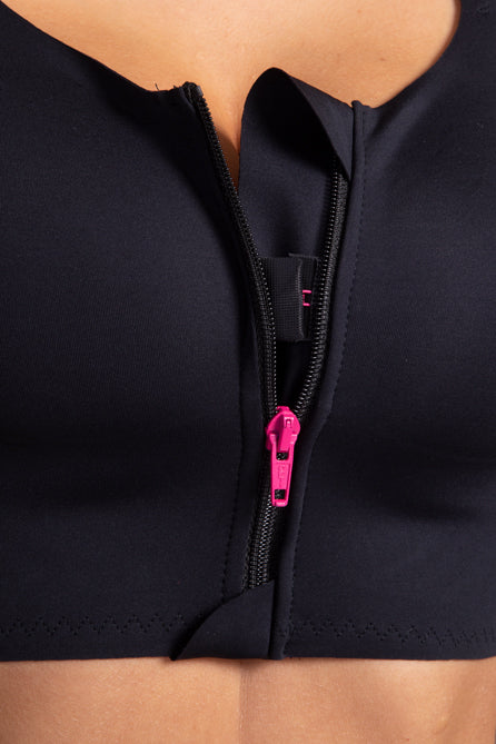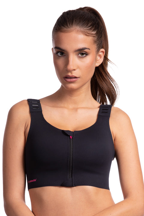 How to put on the post-operative LIPOELASTIC® bra featuring a front zipper properly?