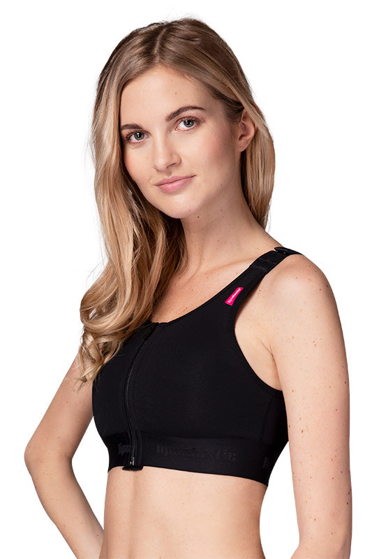 How to put on the post-operative LIPOELASTIC® bra featuring a front zipper properly?