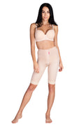 - The legs extend to just above the knees and are finished with a soft lace hem, so the garment never rolls or squeezes your skin
