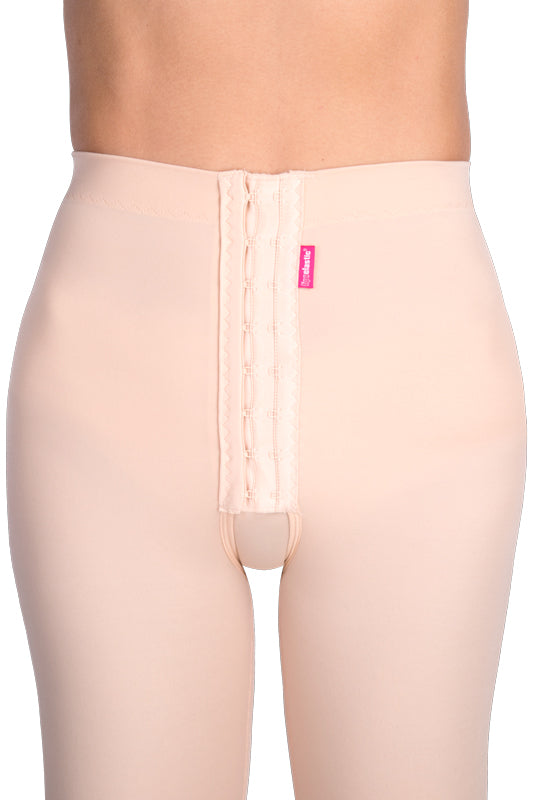 - The outer thighs are reinforced with a double lined fabric for optimal compression