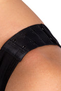 - Closure consists of three rows of hook and eyes along the abdominal area