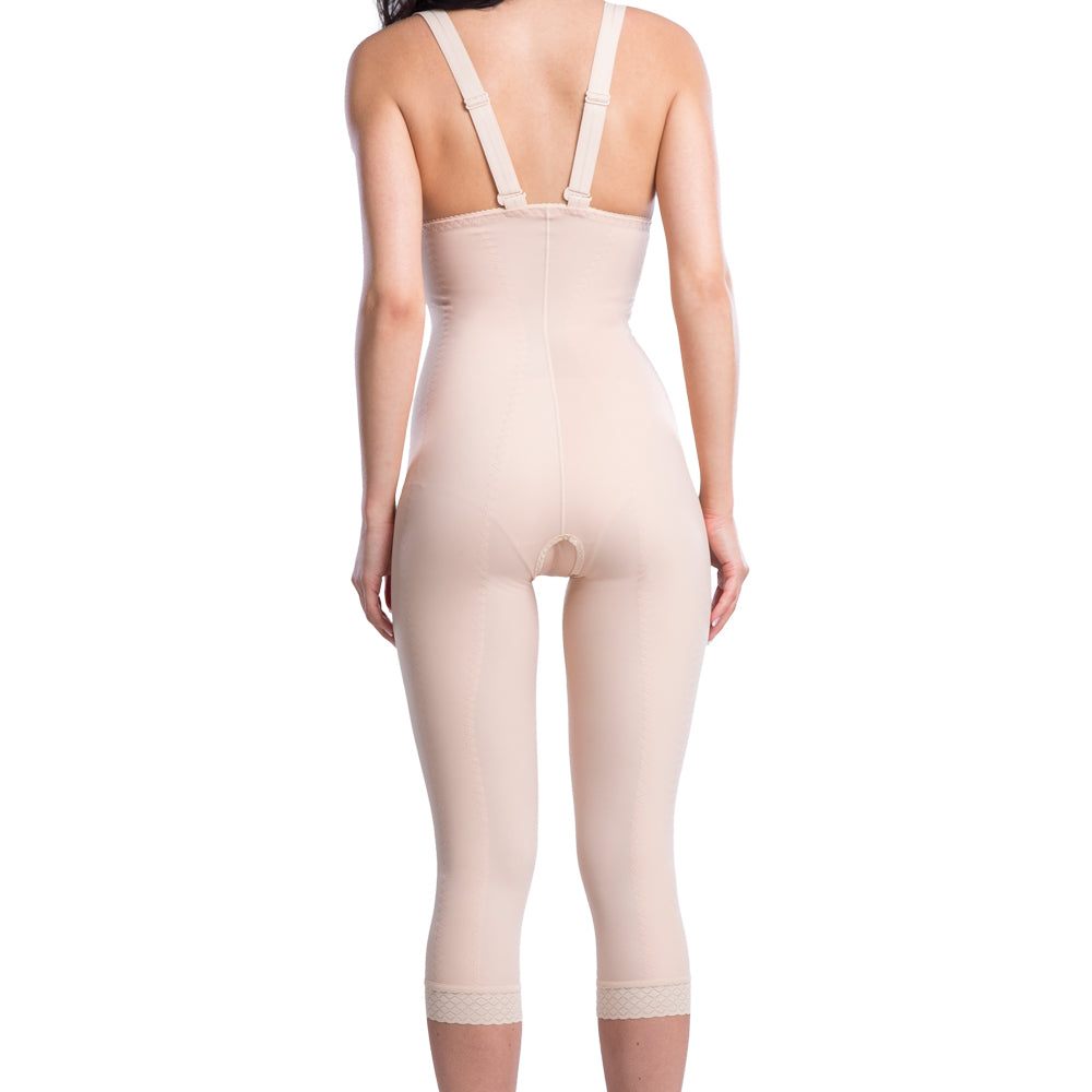 - Female compression post-operative garment with ¾ pants is highly suitable after abdominal plastic surgery, as well as tummy, back, buttocks, hips, thighs, and knees liposuction